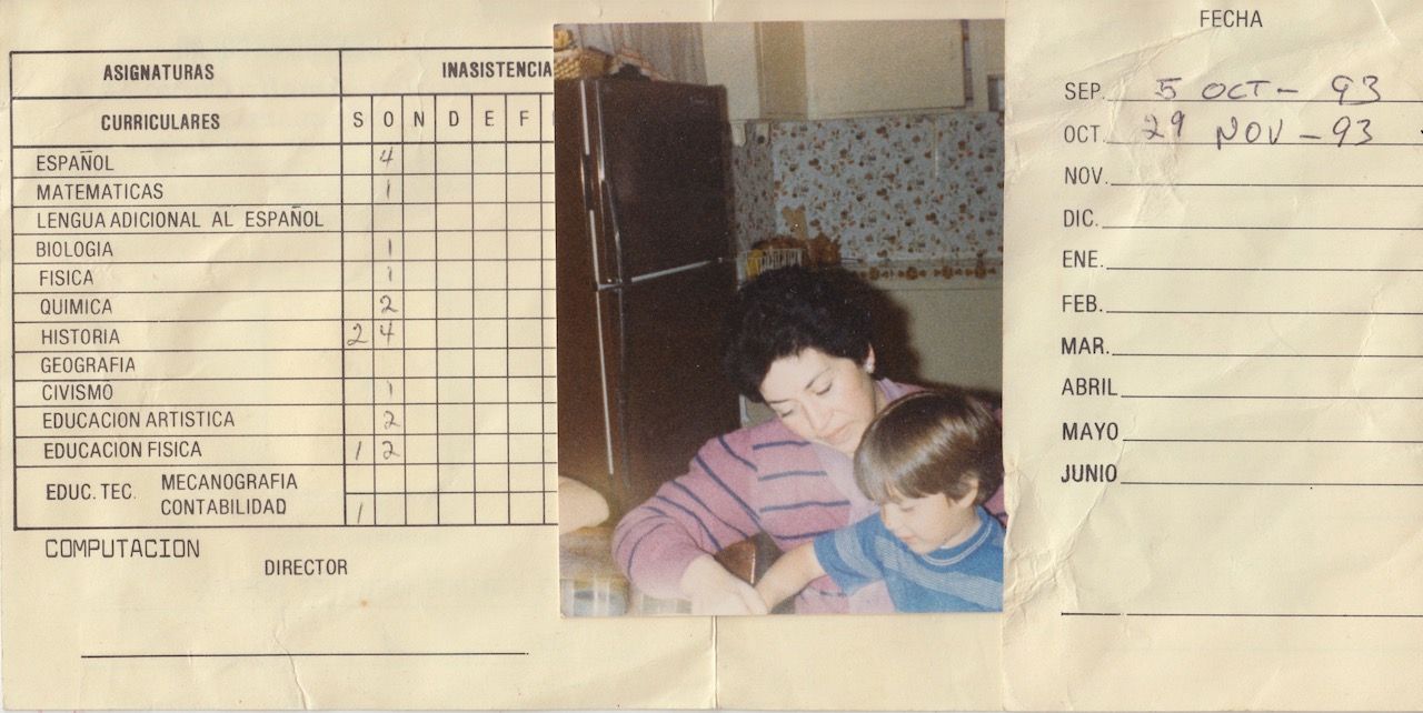 Faltó (2023) Fotomontaje análogo Boleta de calificaciones y fotografía rescatadas del archivo familiar
