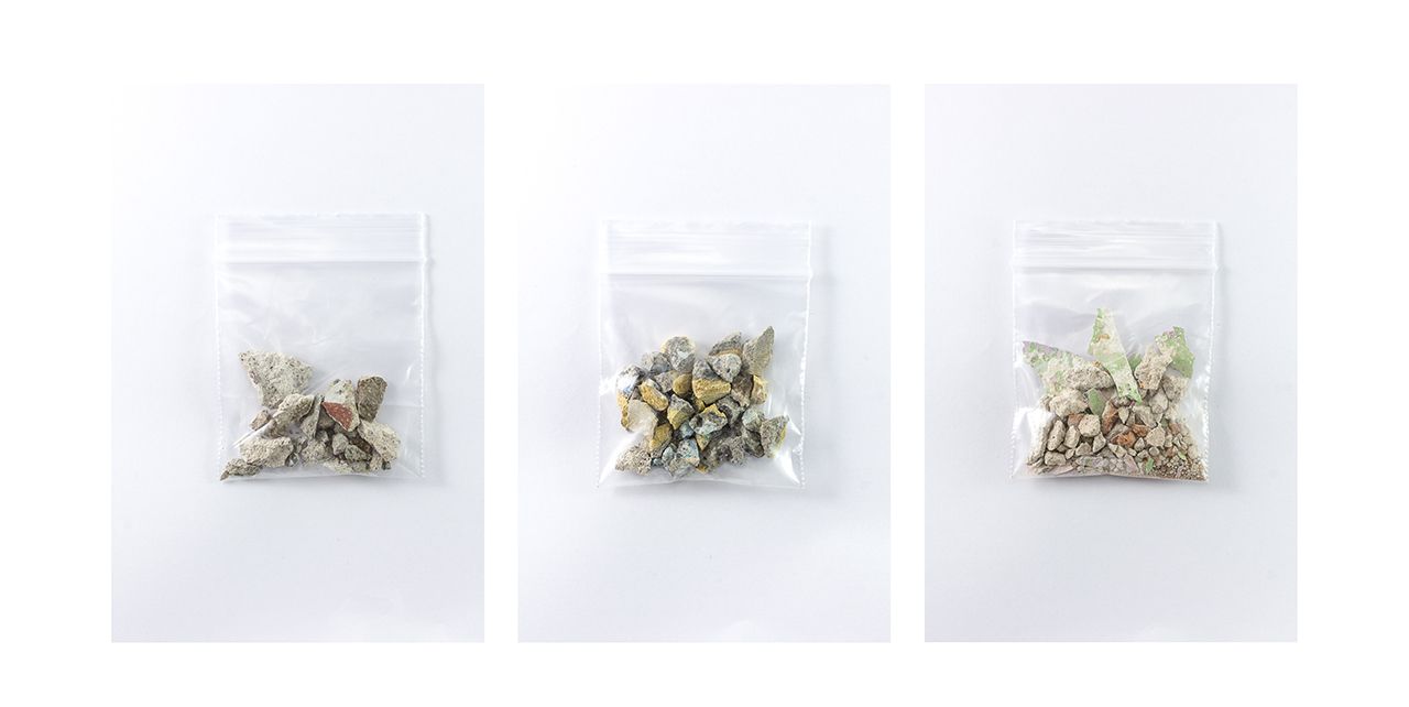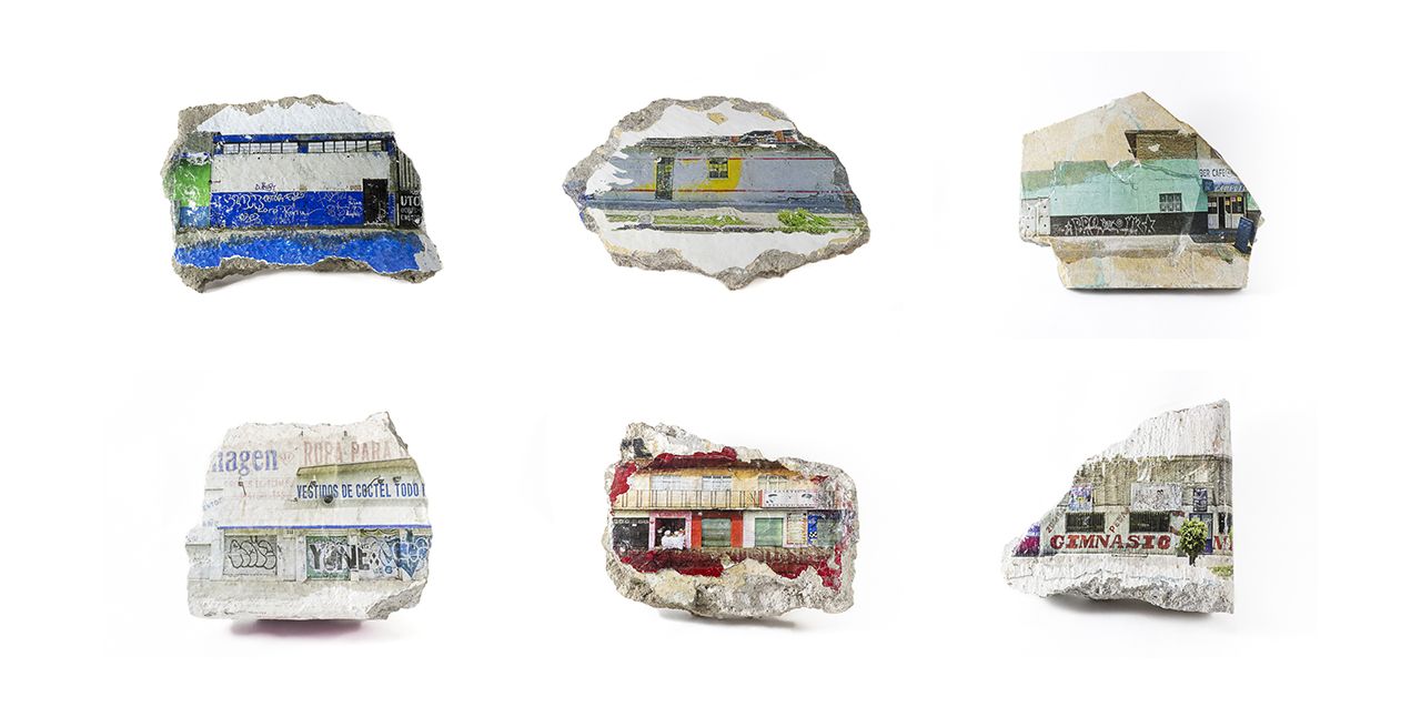 Sedimentos de memoria de la serie Ciudad Palimpsesto, 2020-2022, Transfer sobre pedazos de escombro recuperados in situ.